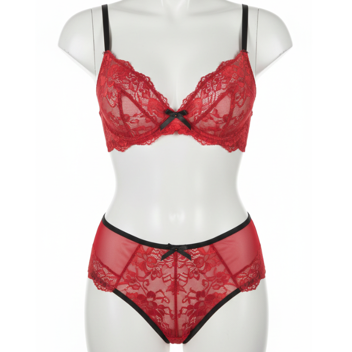 Fancy Non Padded Bra Set - Red